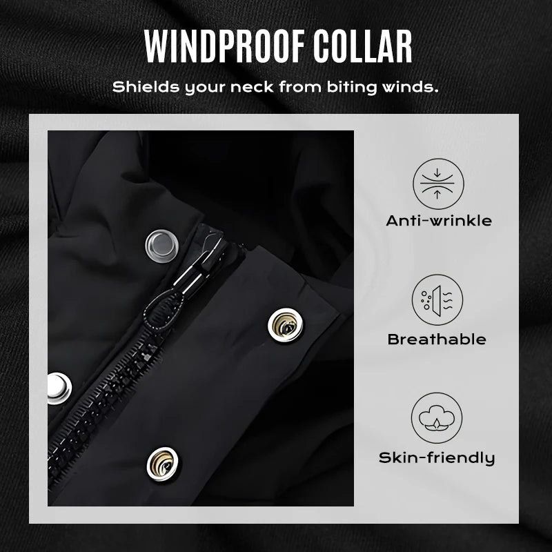 WINDPROOF HOODED COLLAR โ The integrated high collar and adjustable hood provide reliable protection against icy winds. This keeps your neck and head warm and protected from drafts, significantly increasing your comfort in harsh weather.