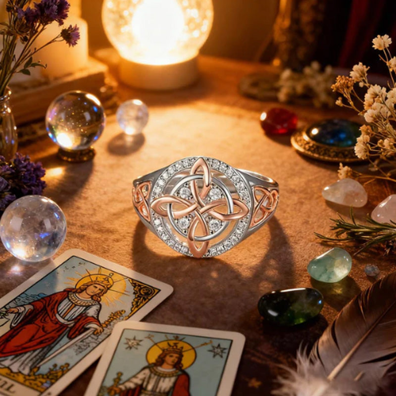 Elegant two-tone ring with Celtic knot and zirconia